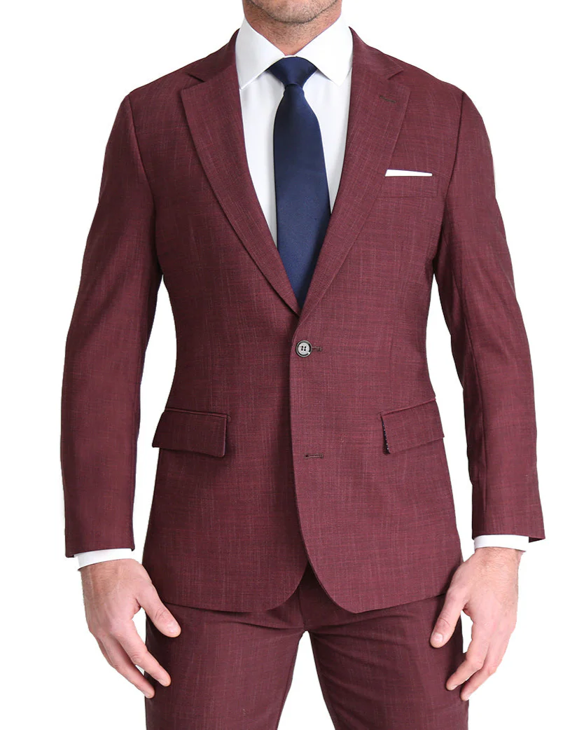 Our heathered maroon stretch blazer is crafted from a performance fabric blend that is extremely stretchy while still providing an incredibly professional appearance. They are lined with our dress shirt fabric making them lightweight, breathable, and moisture-wicking. It also features our signature athletic fit that rewards those with an athletic physique.