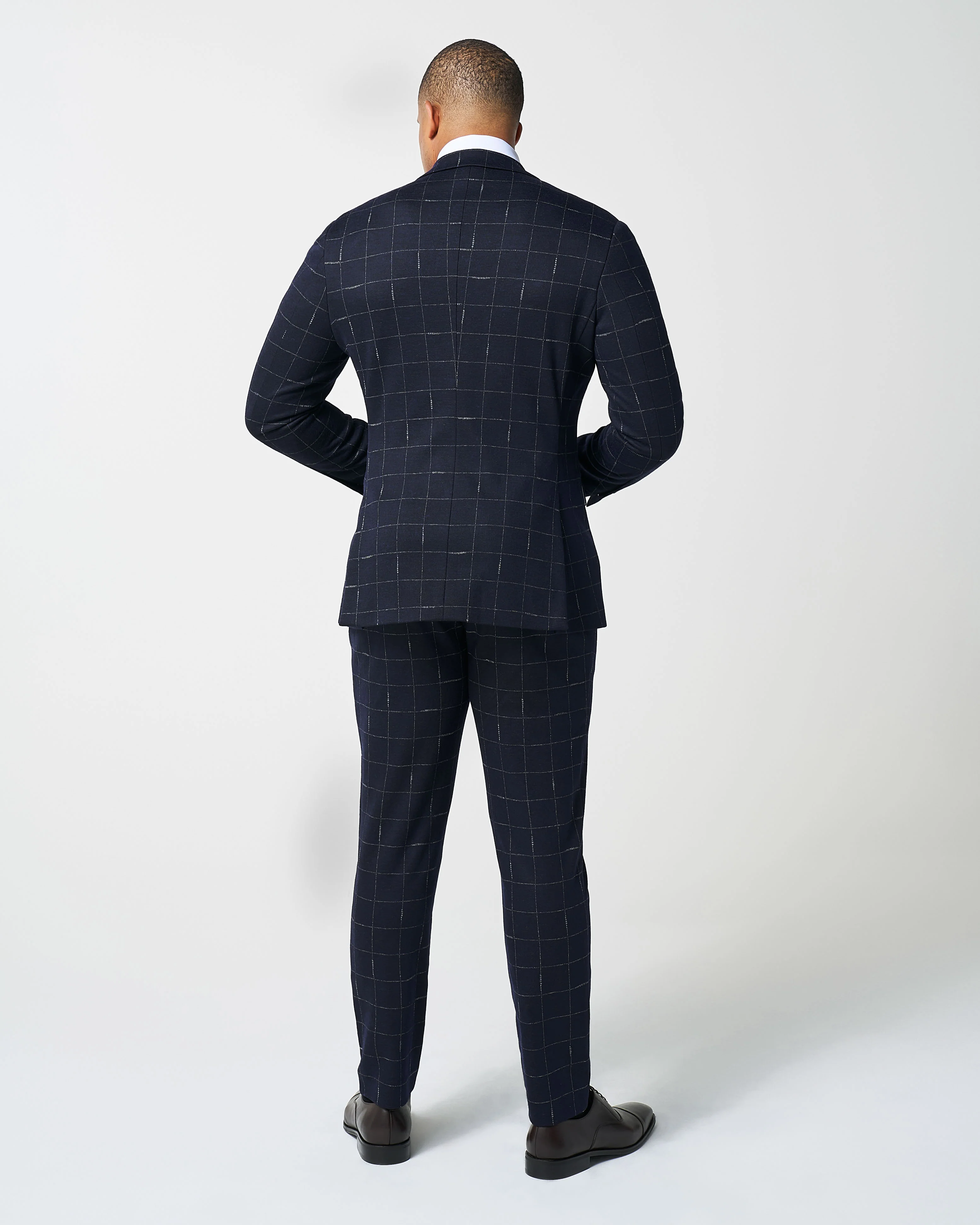 -70%Athletic Fit Stretch Wool Suit - Midnight Navy & Chalk Windowpane—