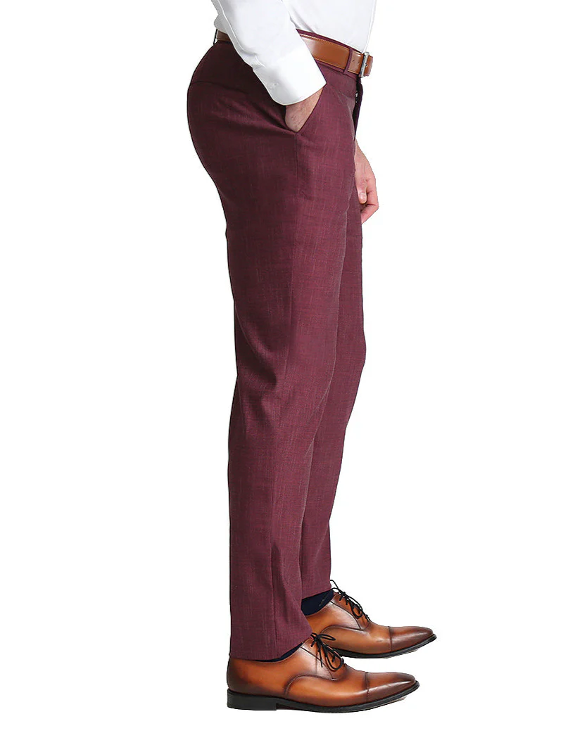 Athletic Fit Stretch Suit Pants - Heathered Maroon