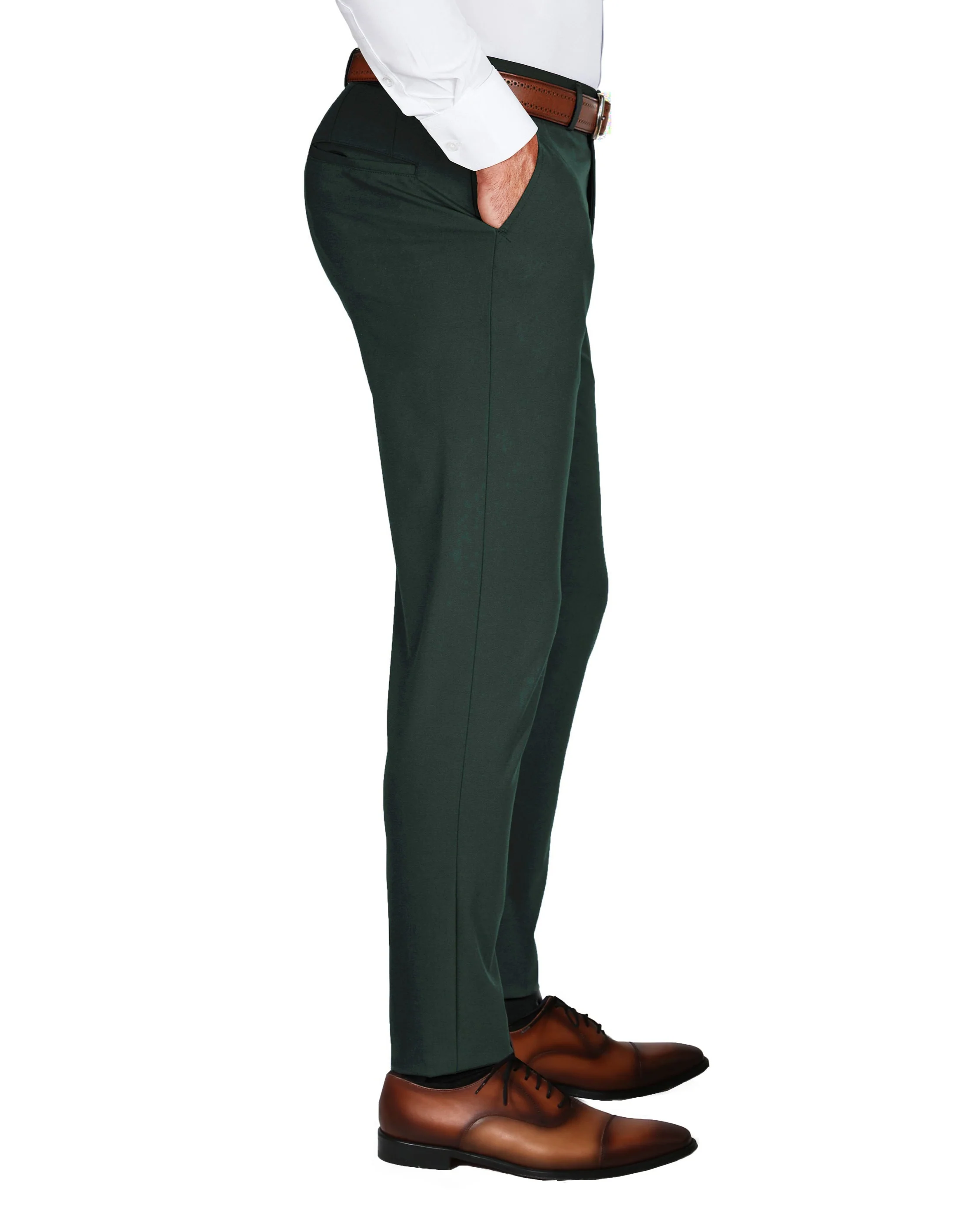 Athletic Fit Stretch Suit Pants - Solid Hunter Green