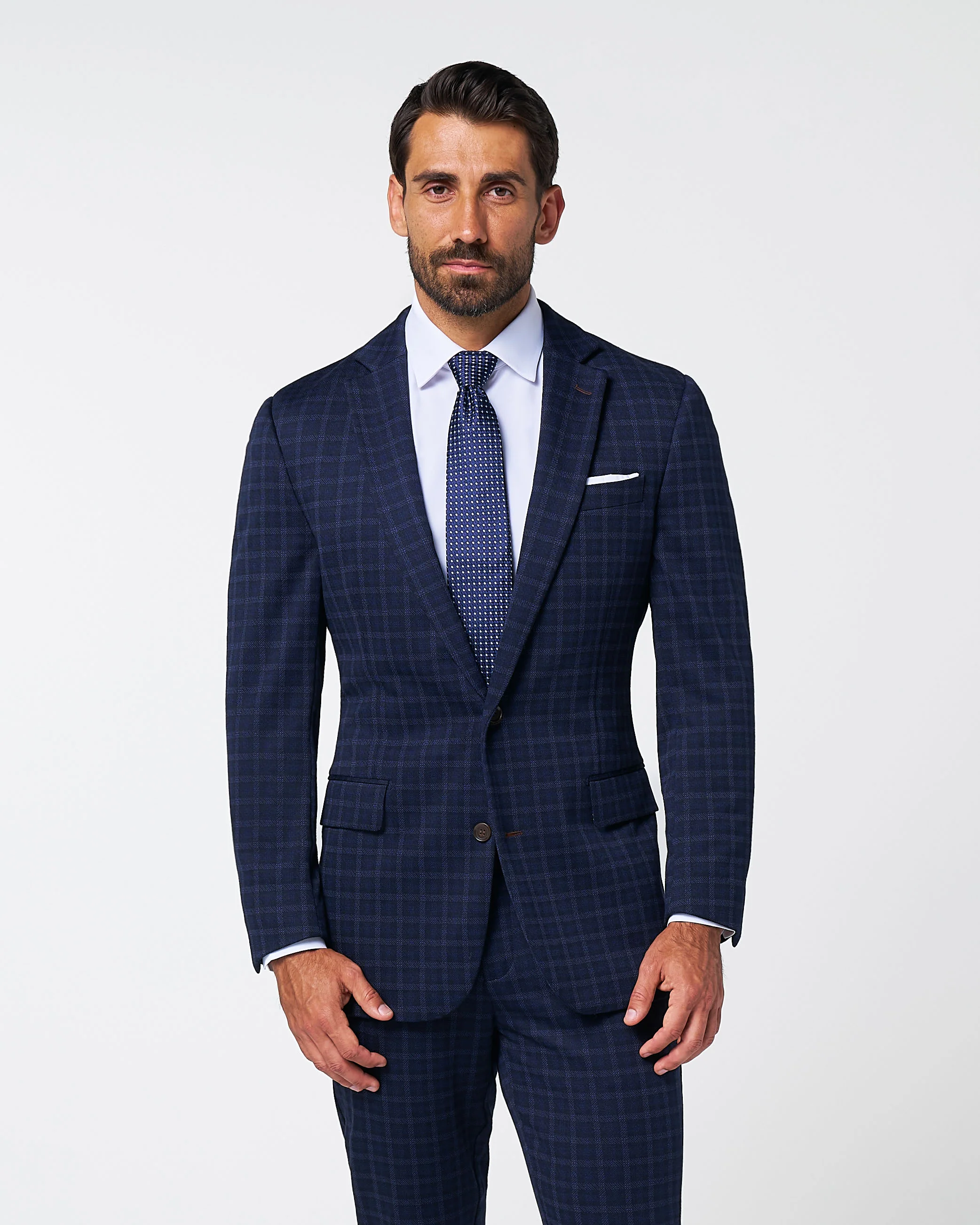 Athletic Fit Stretch Wool Suit - Blue Plaid